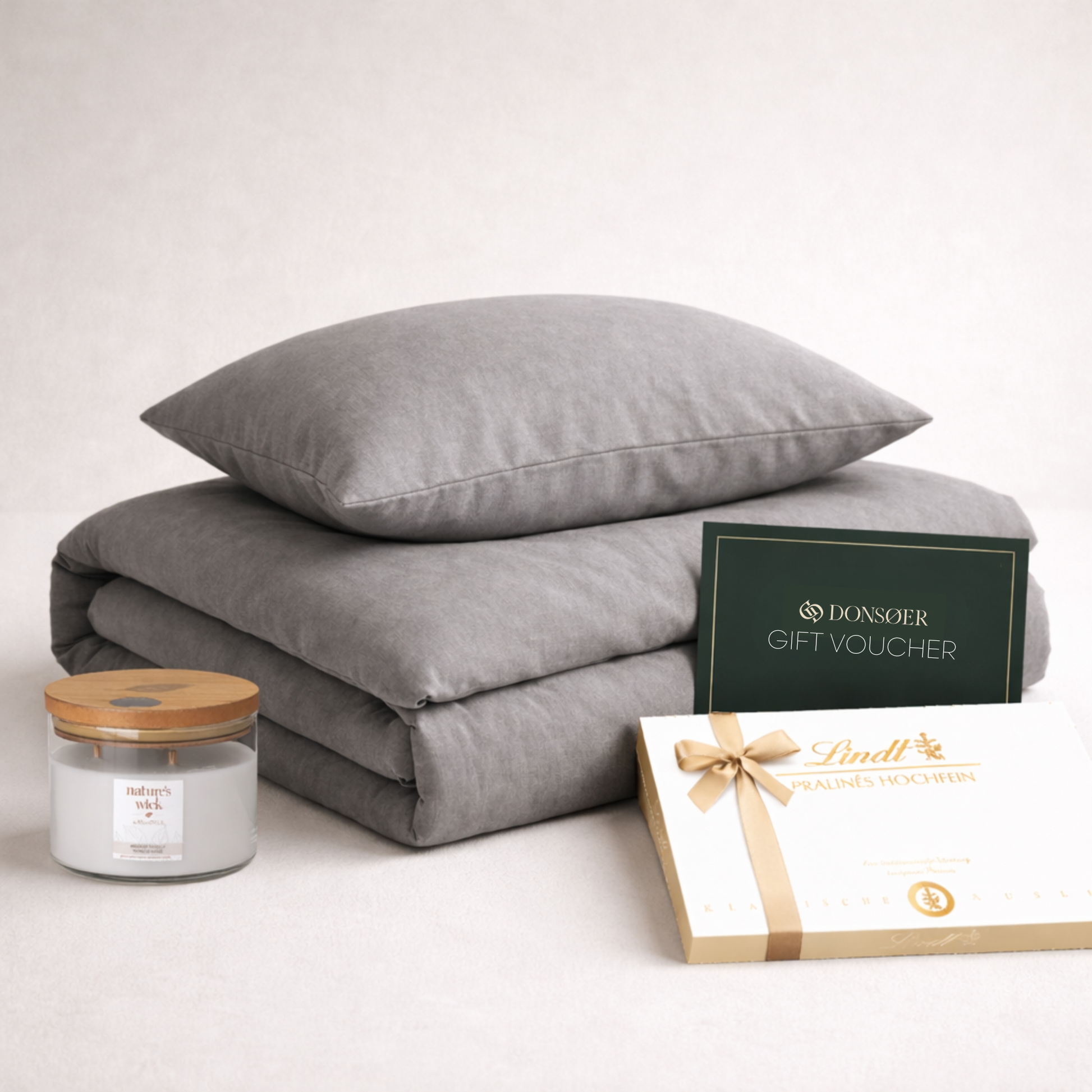 Vytvořte si prostor pro odpočinek, kde na kvalitě neubíráte. Tato sada kombinuje unikátní vlastnosti bavlněného ložního prádla BømLen s atmosférou svíčky a chutí pralinek. Navíc k tomu máte dva dekorační povlaky a dárkový poukaz v hodnotě 1000 Kč. Je to promyšlený dárek, který si vychutnáte společně i každý zvlášť. Baleno v exkluzivním dárkovém boxu Donsøer, připraveno vyvolat silný dojem hned při rozbalování.